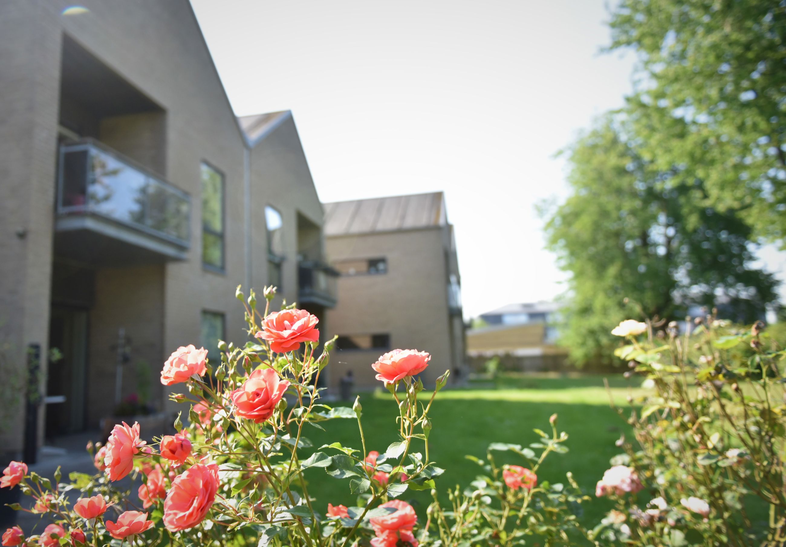 Møllebo er skærmet af boliger foran, og har en dejlig hyggekrog ved indgangspartiet. Bagved bygningen en en dejlig stor terrasse og mange blomsterbede på græsplænen.